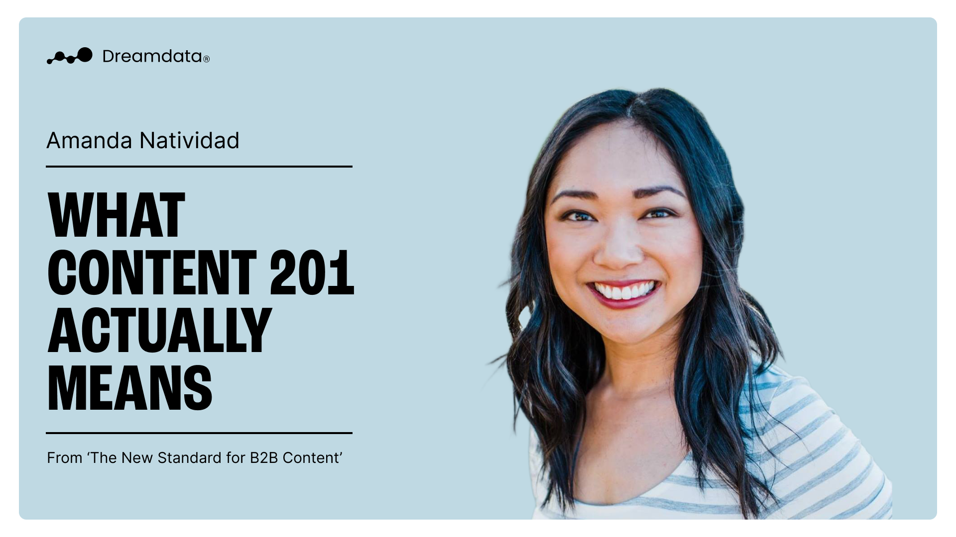 According to Amanda, Content 201 is about arbitrage and sustainability. It asks: Now that the blog is live, what is the next channel? Is it a podcast? Is it a newsletter?